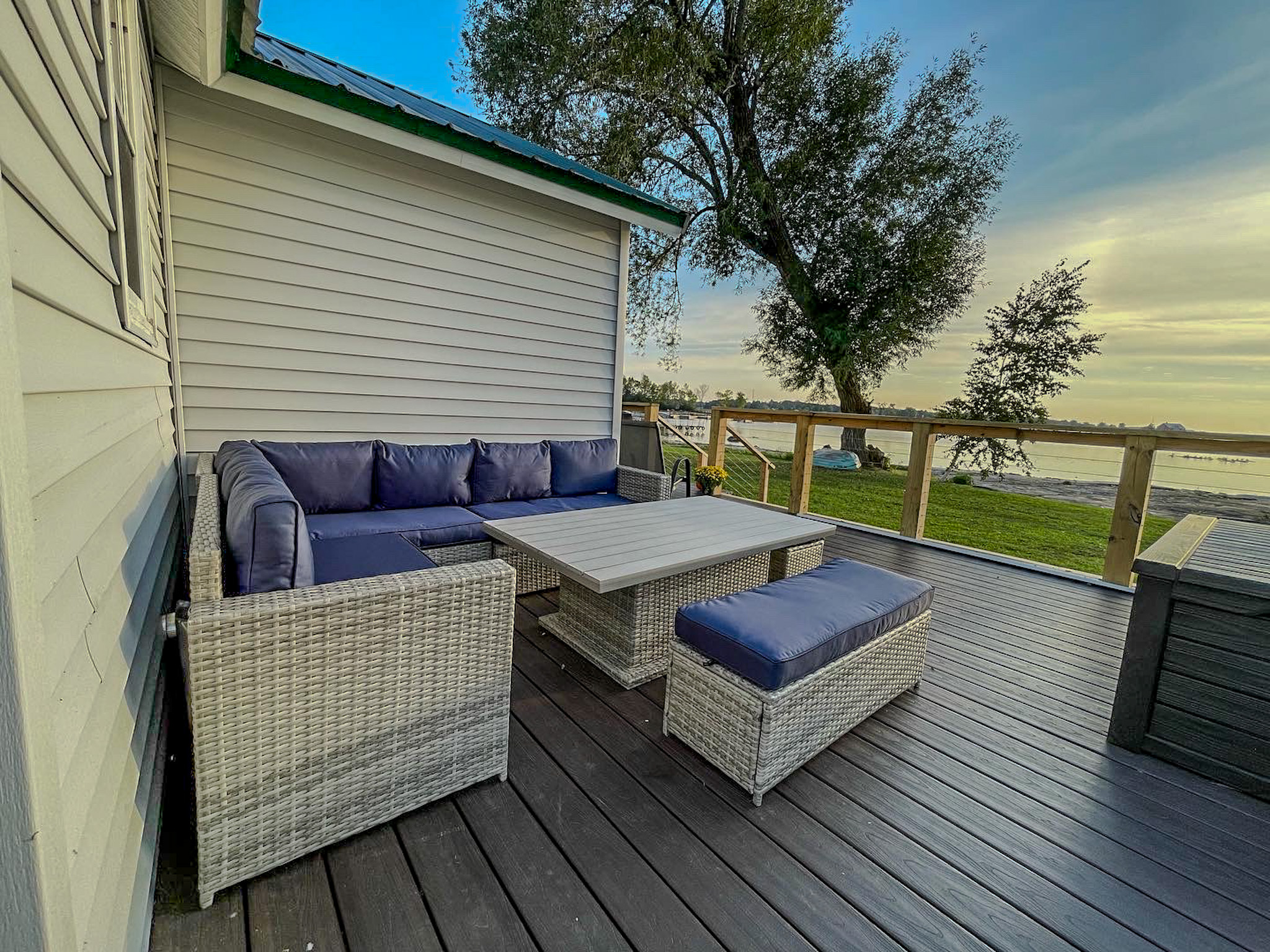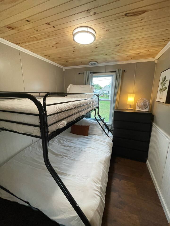 Waterfront Cottage w/ Rare Sandy Beach β’ Dock β’ Firepit β’ River Views Escape to this charming 2-bedroom, 1-bath waterfront cottage on the stunning St. Lawrence River, featuring a semi-private sandy beach just steps from the cottage. Perfect for swimming, relaxing, or building sandcastles right outside your door. The cottage comfortably sleeps up to 6 guests and is well equipped for both short and extended stays, with a full kitchen and laundry available for added convenience. Enjoy front-row views of the shipping channel, where massive freighters glide by and stunning westward facing sunset views. Start your mornings on the outdoor deck with coffee, and end your evenings gathered around the firepit under the stars. Sleeping Arrangements: ποΈ Bedroom 1 (Main Bedroom): Full-size bed ποΈ Bedroom 2: Twin-over-full bunk bed (great for kids or groups) ποΈ Living Room: Full-size pull-out futon What youβll love: ποΈ Semi-private sand beach steps from the cottage (unique to the area!) π Direct waterfront on the St. Lawrence River π’ Incredible shipping channel views ποΈ 2 bedrooms | 1 bathroom | Sleeps up to 6 π½οΈ Full kitchen π§Ί Laundry available on-site for guests π₯ Firepit for cozy nights πͺ Outdoor deck with comfortable furniture β πΆWe offer daily/weekly kayak and dock rental rates πΎ Tennis & π basketball courts within walking distance π‘ Located in a safe, quiet community Whether youβre planning a peaceful river retreat, a family getaway, or an active waterfront escape, this cottage offers the perfect blend of comfort, convenience, and unforgettable waterfront scenery.